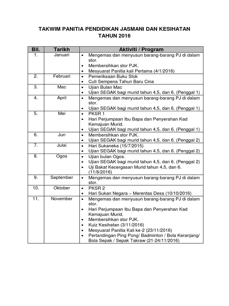 Takwim Panitia Pendidikan Jasmani Dan Kesihatan 2016 Pdf